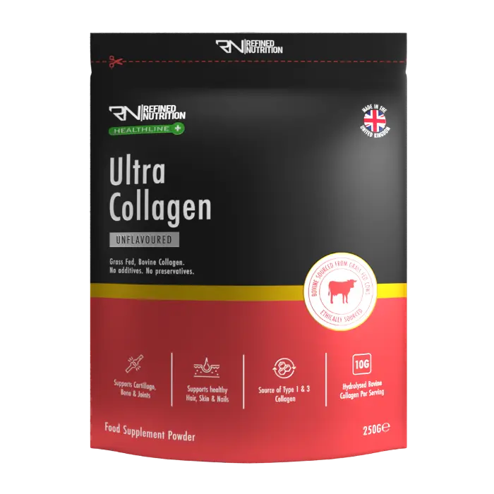 Refined Nutrition Ultra Collagen is a pure collagen powder (type 1 & 3), sourced from grass fed cows. Ultra collagen provides 10g of hydrolysed bovine collagen per scoop, with no added additives. Just pure, clean collagen!
