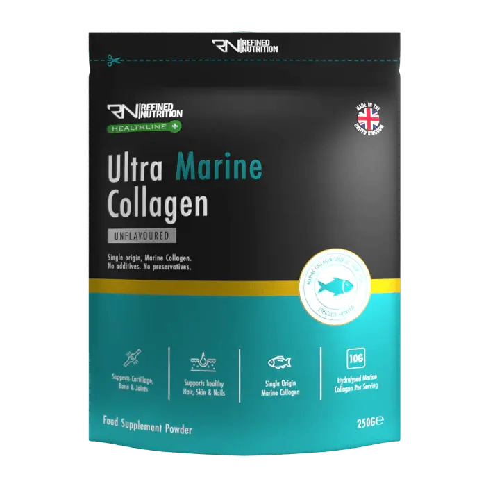 Refined Nutrition Ultra Marine Collagen is a pure collagen powder sourced from single origin fish. Ultra Marine collagen provides 10g of hydrolysed fish collagen per scoop, with no added additives. Just pure, clean collagen!