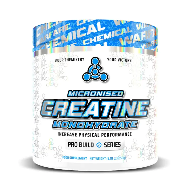 Micronised Creatine Monohydrate: Support Your High-Intensity WorkoutsNow welcoming the option of a larger size Creatine Monohydrate 500g in our new look!Seeking to support your performance during high-intensity exercise? Looking for a widely studied creatine supplement?Micronised Creatine Monohydrate may support muscle function during high-intensity exercise. This supplement is formulated with creatine monohydrate, a popular choice for those engaging in resistance training.Why Choose Chemical Warfare Creatine:Boost High-Intensity Performance: Creatine helps replenish ATP, giving your muscles the energy needed for short bursts of explosive activity.Support Muscle Strength & Power: Combined with resistance training, creatine can help maximize strength gains and overall power output.Optimized Absorption: Our micronised creatine monohydrate is designed for faster, more efficient uptake by your muscles.Enhance Muscle Function for Everyone: Studies show consistent creatine use (35g/day) can support muscle function in both men and women.Pure, High-Quality Formula: Formulated with premium creatine monohydrate for safe, effective supplementation.Recommended Use:Maintenance Phase: Mix 1-2 scoops (5-10g) with 250ml of water or fruit juice daily, preferably with a meal or post-workout.Loading Phase (5 Days): Mix 1 scoop (5g) with 250ml of water or fruit juice, 4 times daily.Cycling: Some athletes choose to cycle creatine. After 5 days of loading, maintain for 1-2 weeks, followed by a 3-week off-cycle. Important Notes:Drink plenty of water: Adequate hydration is important when using creatine. Discover Micronised Creatine Monohydrate.