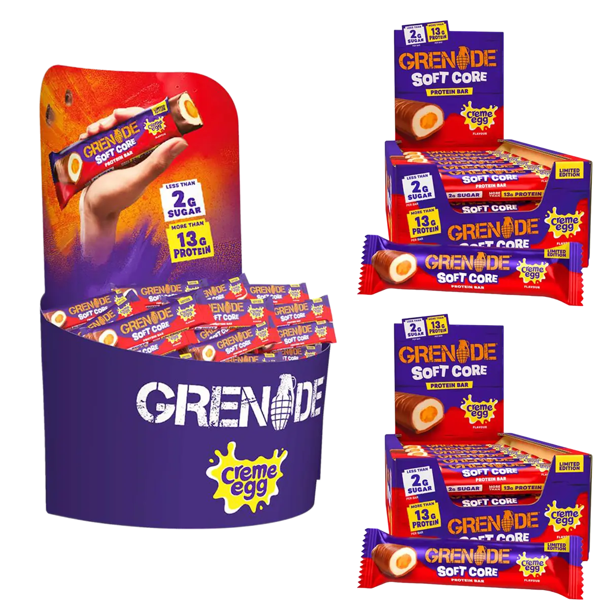 Grenade Protein Bar (Soft Core) Creme Egg Countertop Unit Plus 2 x Grenade Protein Bar (Soft Core) 18x45g Creme Egg