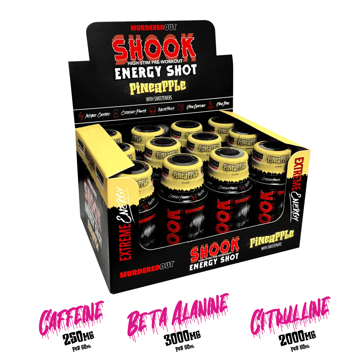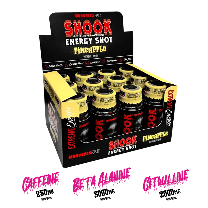 Container Size: 12x60ml Serving Size: Half Shot (30ml) Amount Per Two Servings (60ml): Protein: 0g Carbohydrates: 0g Fat: 0g Salt: 0.1g Key Ingredients: Beta Alanine 3000mg, Citrulline DL Malate 2:1 2000mg, L Arginine 2000mg, Taurine 1000mg, Caffeine Anhydrous 250mg, Acetyl L Tyrosine 250mg, Vitamin B6 3mg, Bioperine 2mg, Vitamin B12 2.5ug Ingredients: Water, Beta Alanine, Citrulline DL Malate 2:1, L Arginine, Acidity Regulators (Phosphoric Acid, Malic Acid, Citric Acid), Taurine (Anti Caking Agent: Silicon Dioxide), Acetyl L Tyrosine, Caffeine Anhydrous, Flavourings, Preservative (Potassium Sorbate), Sweeteners, (Acesulfame K, Sucralose), Vitamin B6 (Pyridoxine HCL), Bioperine (Black Pepper Extract), Colour (Brilliant Blue) (E133), Vitamin B12 (Cyanocobalamin) Please Note: Nutritional facts and ingredients may vary slightly between flavours.