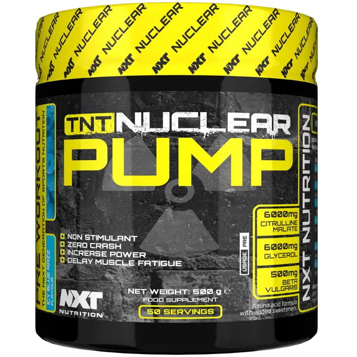 Powerful non-stimulant pre-workout pump formula for nitric oxide production, TNT Pump increases intracellular water levels, enhances nutrient delivery, delays fatigue, boosts strength gains, and improves recovery between sets. Athletes have long sought a way to maximise nutrient delivery during training to drive muscle hypertrophy, stimulate nitric oxide production, and create more productive workouts, yet most formulas have fallen short with weak ingredients and underdosed blendsuntil now. As the Masters of Innovation, NXT Nutrition has developed TNT Pump using the latest scientific research and a fewer ingredients, higher quality dosages approach, combining Citrulline Malate, Glycerol, Beta Vulgaris, and Betaine to deliver insane pumps and unparalleled intraworkout performance. These synergistic ingredients amplify nitric oxide production, allowing greater oxygen and nutrient flow to working muscles while supporting delayed fatigue, faster recovery between sets, and stronger overall performance. Less filler, maximum productivityTNT Pump is another breakthrough from the pioneers of sports nutrition.