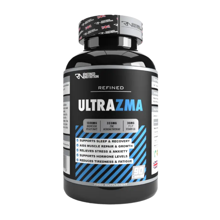 Refined Nutritions ULTRA-ZMA is a premium formula designed to support sleep and recovery and enhance overall well-being. Containing a powerful combination of Magnesium Bisglycinate, Zinc Monomethionine and P-5-P- Vitamin B6. Supports Sleep & RecoveryAids Muscle Repair & GrowthRelieves stress & AnxietySupports Hormone LevelsReduces Tiredness & FatigueSuitable for Vegetarians. A Halal Product. GMP Certified.