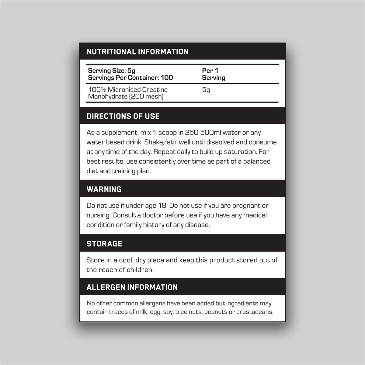 Our Creatine Monohydrate delivers 5,000mg of pure, ultra-fine micronised creatine (200 mesh) in every serving - supporting strength, power, and performance across every type of training. Creatine plays a vital role in ATP regeneration, the bodys primary energy system for short bursts of intense effort like lifting, sprinting, or explosive movements - helping you train harder and recover quicker.Whether you're building muscle, maintaining performance with age, or simply staying consistent with your fitness, creatine is one of the most researched and reliable supplements available. With 100 unflavoured servings per tub, this is a no-frills, high-value staple designed for anyone serious about progression - no matter your goal, training style, or experience level.