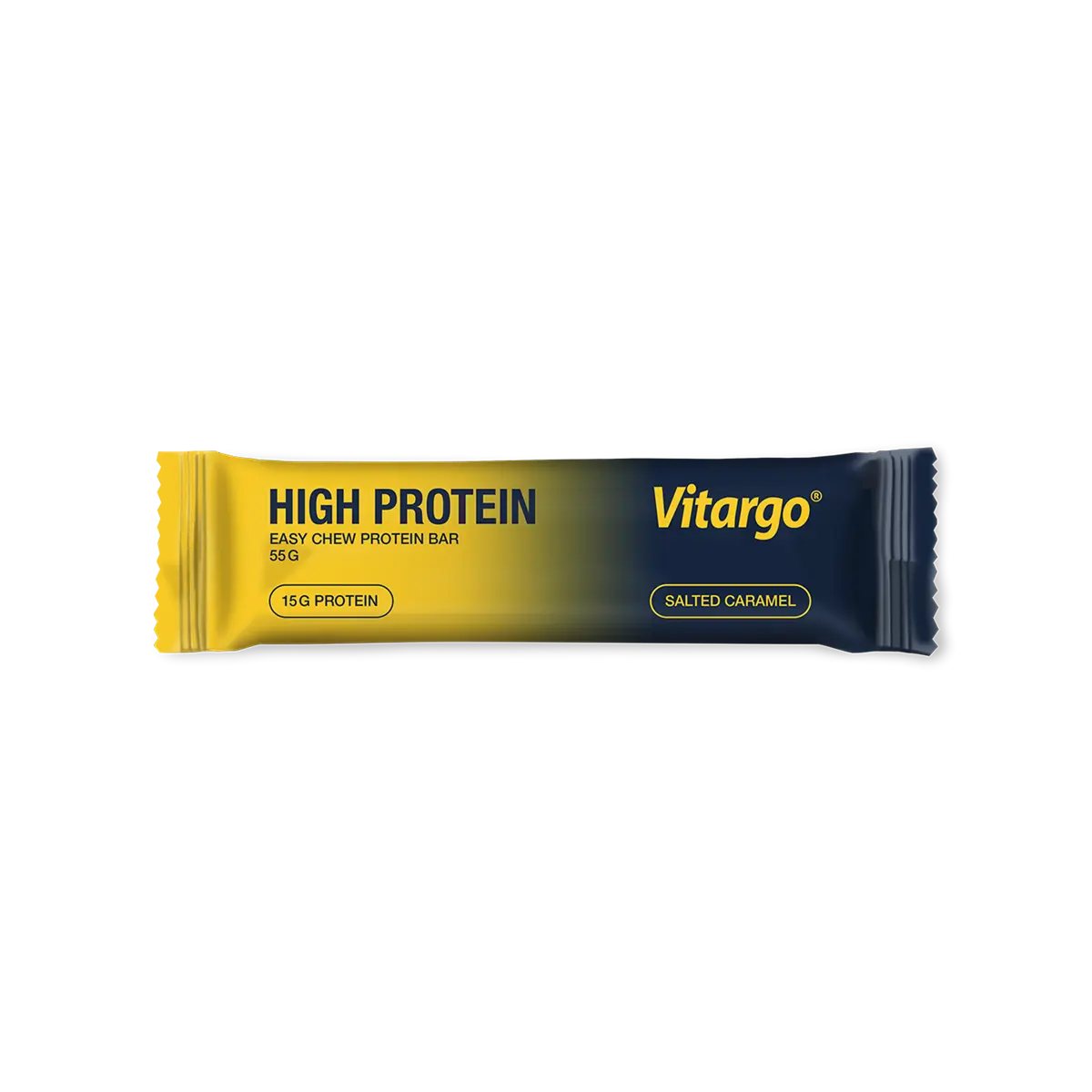 Easy chew bar crafted for athletes. No more struggling through chalky, cement-like protein barsour easy-chew formula stays soft and satisfying, so you can fuel fast and get back to performingPremium milk chocolate meets high-performance nutrition in a bar that actually tastes as good as it works. Engineered for athletes who demand real results without sacrificing flavor, our High Protein Bar delivers 15g of quality protein in every perfectly crafted bite.Why Elite Athletes Choose Vitargo: 15g High-Quality Protein Optimal muscle support and recovery. Premium Milk Chocolate Coating Indulgent taste, performance-grade nutrition.Protein Crispies Perfect texture that's easy to chew, even mid-workoutSalted Caramel Flavor Delicious enough to crave, clean enough to trustConvenient 55g Format Perfectly portioned for on-the-go fueling. Built for Performance. This isn't just another protein bar. Our strategic protein delivery system combines fast and sustained-release proteins to support muscle recovery and maintenance exactly when your body needs it. The premium chocolate coating and protein crispies create an unmatched texture that goes down easywhether you're fresh out of the gym or fueling between sessions.