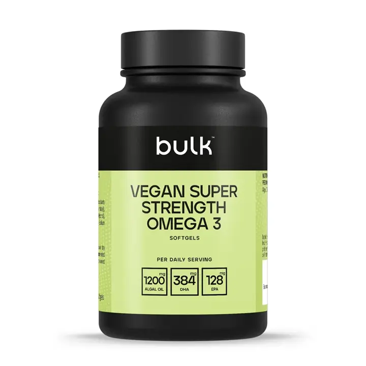 Bulk Vegan Super Strength Omega 3 is a plant-based omega-3 supplement derived from algae, providing essential fatty acids for heart and brain health. Ideal for vegans and those looking for a sustainable omega-3 source.