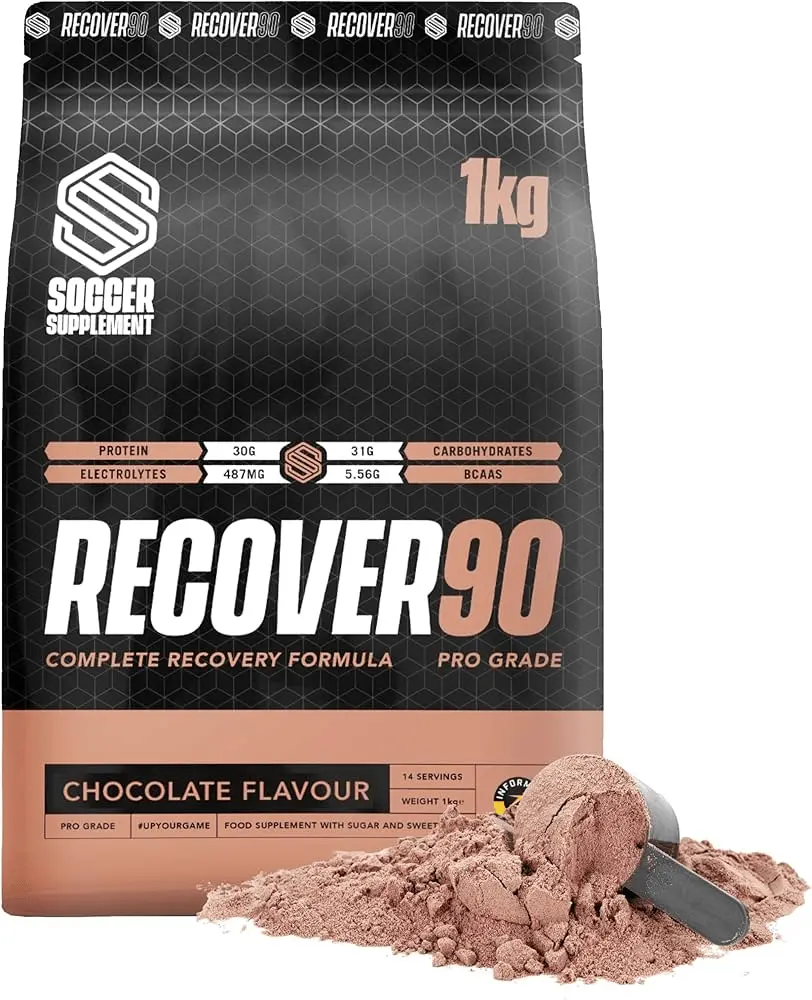 Accelerate recovery and refuel like a pro with Soccer Supplement Recover90, the complete recovery shake engineered for athletes. Each serving delivers a powerful blend of 30g of high-quality whey protein isolate, 31g of fast-acting carbohydrates, and 487mg of electrolytes to support muscle repair, replenish glycogen stores, and restore hydration. Informed Sport tested and trusted by professional players, Recover90 provides the optimal balance of nutrients your body needs to recover faster and come back stronger.