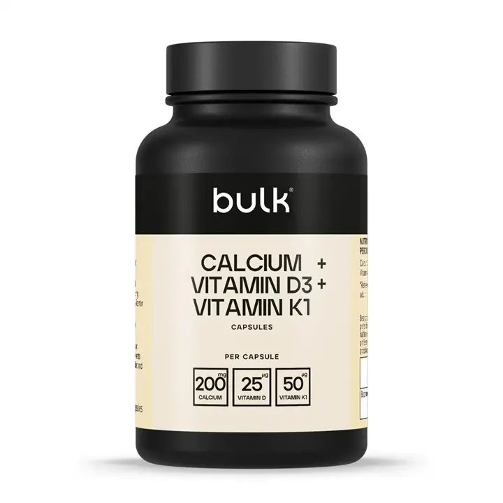 Bulk Calcium + Vitamin D3 + Vitamin K1 1000mg is a dietary supplement that supports bone health and density. It provides essential nutrients for maintaining strong bones and overall health.