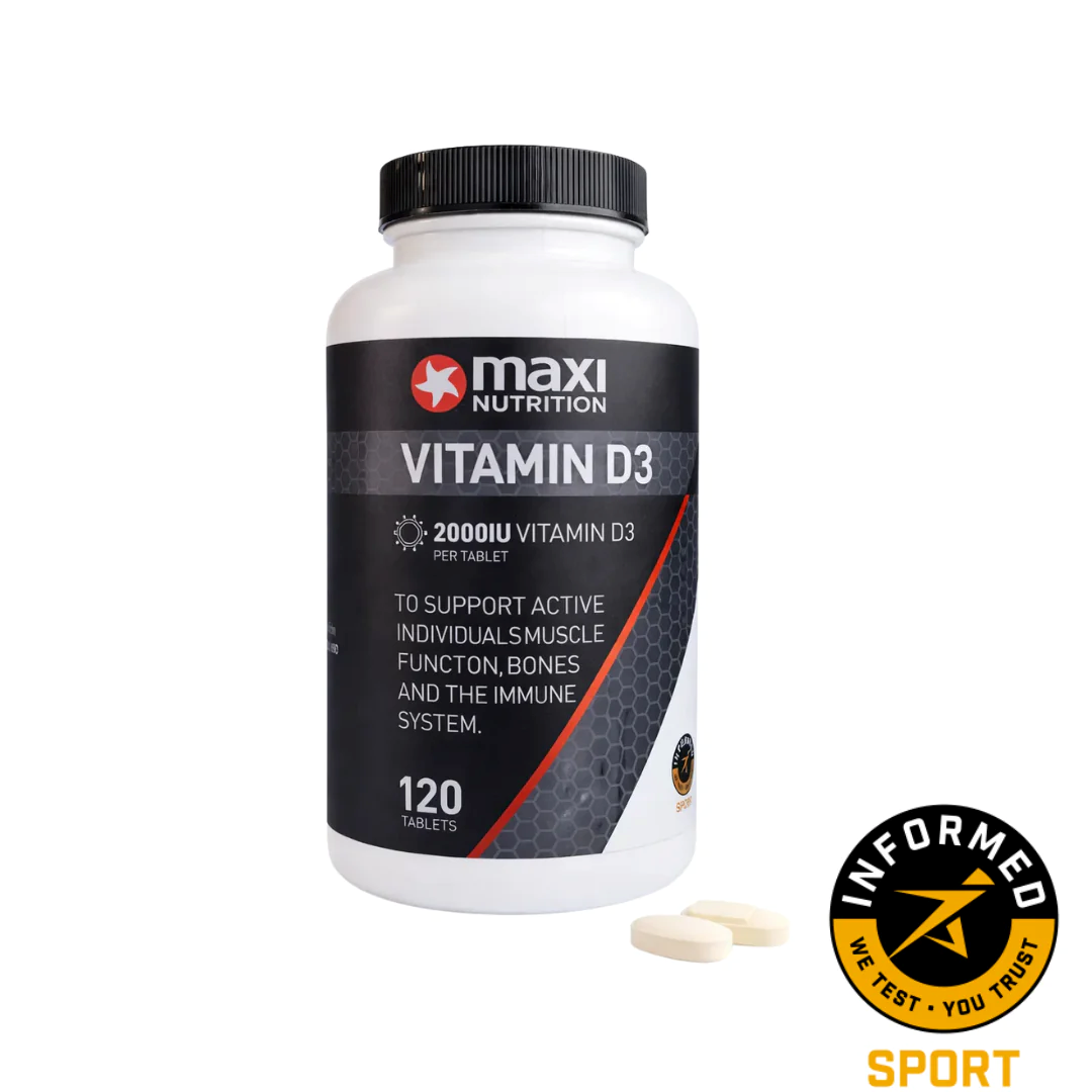 MaxiNutrition Vitamin D3 tablets, often considered a hormone rather than a vitamin due to vitamin D being responsible for regulating phosphate and calcium in the body. Officially, vitamin D is classed as a fat-soluble vitamin which is obtained in part, from the diet but mostly from direct sunlight. Depending on seasonal changes, geographical location and lifestyle, the vitamin D availability can become compromised. Along with the regulatory function, Vitamin D has a host of other beneficial attributes, including:Contributes to the maintenance of normal muscle function.Contributes to the maintenance of normal bones.Contributes to the normal function of the immune system.The reference nutrient intake (RNI) for vitamin D is 10mcg per day for anyone over the age of 1. The NHS suggest that vitamin D deficiencies do occur and supplementation with 10mcg/d should be considered. Based on the scientific literature, active individuals at risk of a deficiency may benefit from supplementing with a higher dose.Informed Sport TestedInformed Sport is a global testing and supplement certification programme which provides assurance to athletes that products carrying the Informed Sport mark have been tested for prohibited substances and manufactured to high-quality standards.Perfect support for a new exerciser or seasoned sports professional.